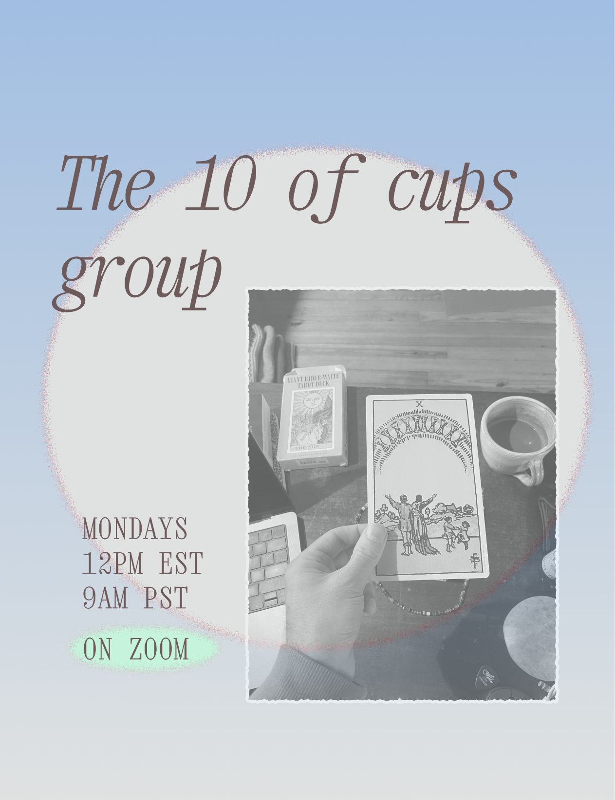 When I picked a tarot card while I was making the group, I got the 10 of cups — a rainbow, and a family enjoying it. I used to think of this card as happiness, but now I think of it as emotional fulfillment.