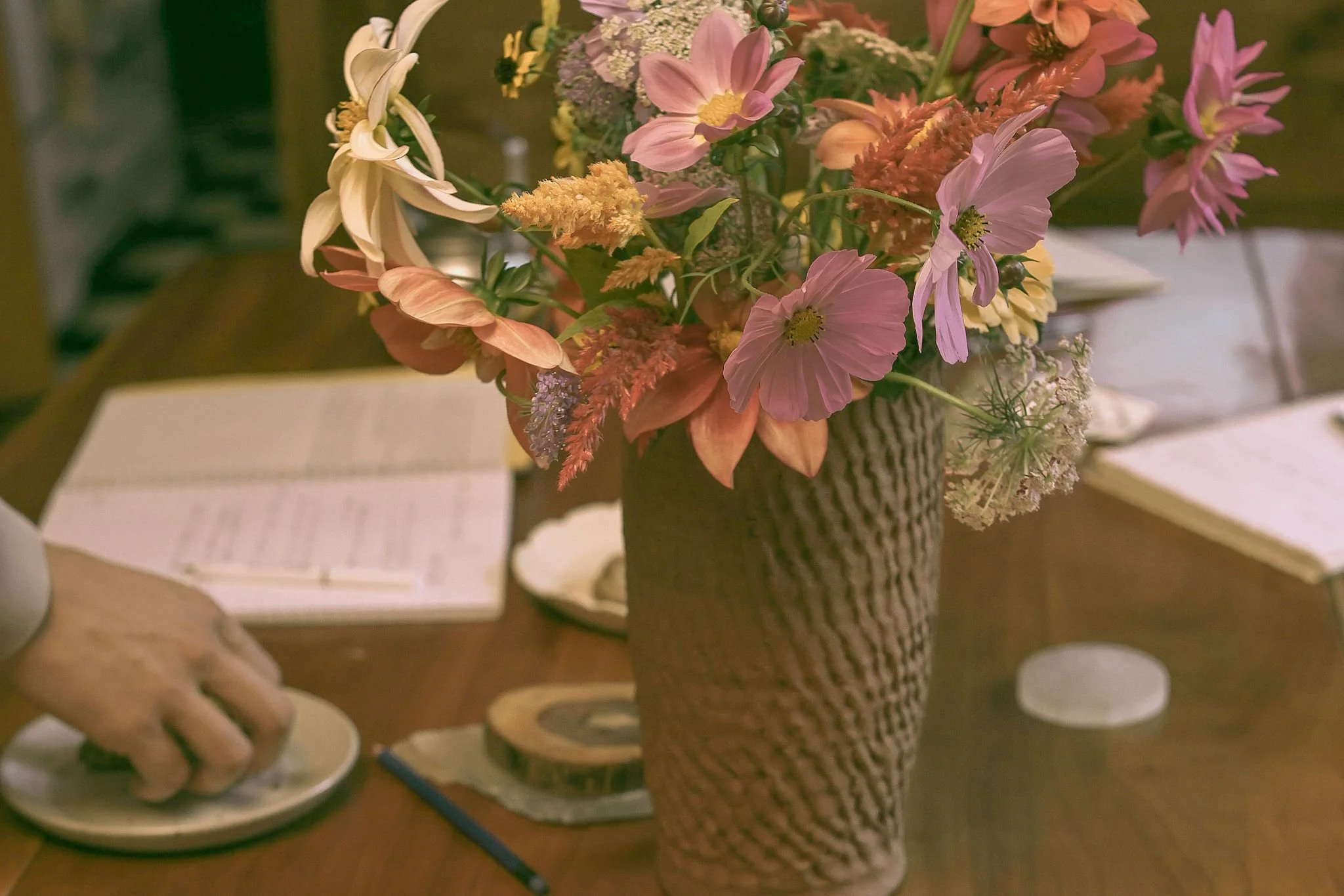 This means: talking about your goals and challenges, consulting the tarot, and using energy work like breathwork to open your energy, then coming to the desk and translating what we found into practical action steps.